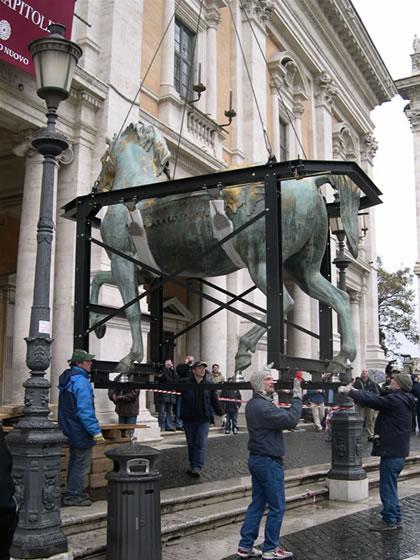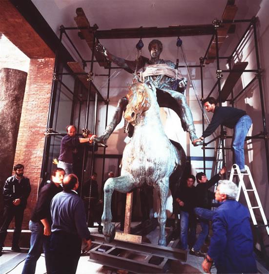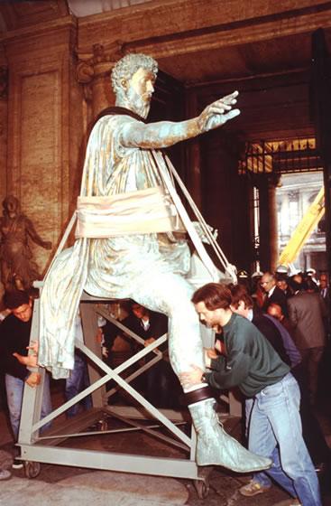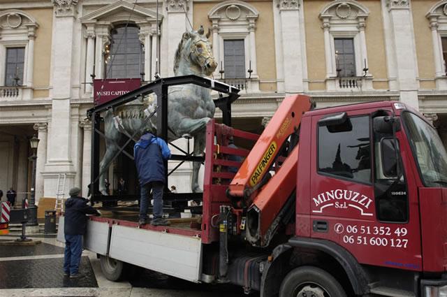 Smontaggio, carico, trasporto e scarico del gruppo "Marco Aurelio" dal Campidoglio all'Istituto San Michele. https://www.publicationstore.com/