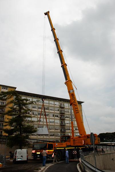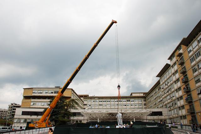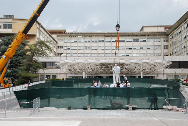 Trasporto e posizionamento statua in memoria di Giovanni Paolo II, presso l' Ospedale Policlinico A. Gemelli